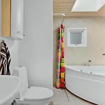 Holiday Home Hejls With Hot Tub 265 beschikt over een badkamer met een apart toilet en een douche. Gasten kunnen ook genieten van het gemak van een droger.